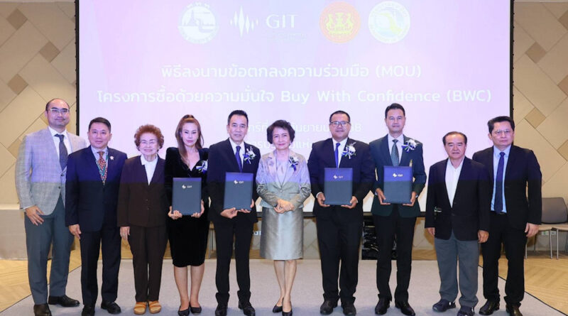 กระทรวงพาณิชย์ โดยสถาบันวิจัยและพัฒนาอัญมณีและเครื่องประดับแห่งชาติ (องค์การมหาชน) หรือ GIT ร่วมกับการท่องเที่ยวแห่งประเทศไทย (ททท.) กรมการท่องเที่ยว และสำนักงานคณะกรรมการคุ้มครองผู้บริโภค (สคบ.) จัดพิธีลงนามบันทึกข้อตกลงความร่วมมือ (MOU) ภายใต้โครงการ “ซื้อด้วยความมั่นใจ” ( Buy with Confidence: BWC) วันพฤหัสบดีที่ 12 กันยายน 2568 เวลา 13.30 –15.00 น. ณ ห้องประชุม 110C ชั้น 1 ศูนย์การประชุมแห่งชาติสิริกิติ์ โดยได้รับเกียรติจากนายนันทวัลย์ ศกุนตนาค ประธานกรรมการ GIT เป็นสักขีพยานรวมถึงกล่าวแสดงความยินดี และนายสุเมธ ประสงค์พงษ์ชัย ผู้อำนวยการ GIT กล่าวถึงวัตถุประสงค์ของการจัดงาน