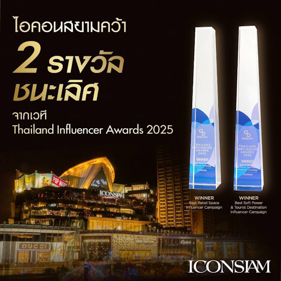 ไอคอนสยาม แลนด์มาร์กระดับโลกริมแม่น้ำเจ้าพระยา โชว์ศักยภาพร่วมมือกับครีเอเตอร์และอินฟลูเอนเซอร์ไทย สร้างสรรค์แคมเปญและคอนเทนท์ที่ทรงพลัง และครองใจกลุ่มเป้าหมายบนโลกออนไลน์ คว้าสองรางวัลใหญ่จากเวที Thailand Influencer Awards 2025 ได้แก่ รางวัล Best Retail Space Influencer Campaign จากแคมเปญ Amazing Thailand Countdown 2025 และ Best Soft Power & Tourist Destination Influencer Campaign จากแคมเปญ Thaiconic Songkran Celebration 2025 ผลงานครั้งนี้ สะท้อนถึงศักยภาพและความมุ่งมั่นของไอคอนสยามที่ตั้งใจดำเนินแผนกิจกรรมการตลาดบนความเข้าใจลูกค้า เพื่อส่งมอบประสบการณ์เหนือความคาดหมายและเชื่อมโยงผู้บริโภคบนโลกออนไลน์ เข้ากับประสบการณ์ระดับโลกบนพื้นที่ไอคอนสยามได้อย่างแท้จริง และยังตอกย้ำบทบาทการเป็นศูนย์กลาง Soft Power ที่สำคัญของประเทศตลอดมา