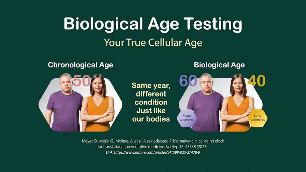 2. เป็นเครื่องมือติดตามผล (Monitoring Tool) ที่ทรงพลัง: อายุทางชีวภาพสามารถลดลงได้ด้วยการปรับเปลี่ยนไลฟ์สไตล์ ทำให้การตรวจนี้เป็นเครื่องมือวัดผลทางวิทยาศาสตร์ที่จับต้องได้ เพื่อการชะลอวัยอย่างมีประสิทธิภาพ