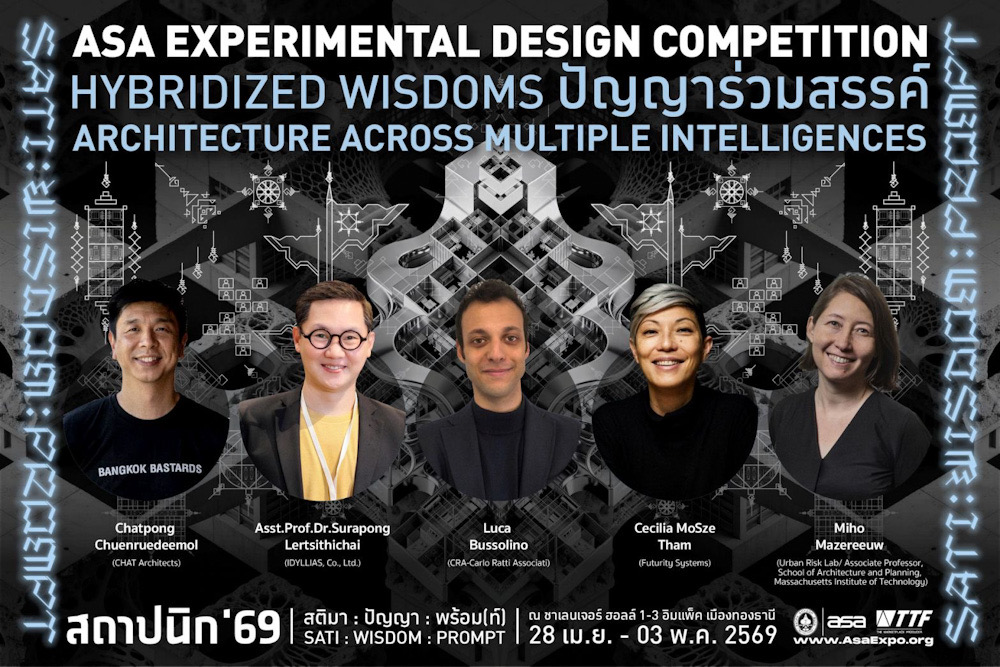 เพื่อให้การจัดงานเป็นไปอย่างครบถ้วนสมบูรณ์ ทางสมาคมฯ ได้จัดกิจกรรมพิเศษ ASA Experimental Design Competition 2026 เปิดรับสมัครประกวดแบบเพื่อคัดเลือกสุดยอดผลงานร่วมแสดงนิทรรศการภายในงาน “สถาปนิก’69” ครั้งนี้ โดยเชิญชวนนักออกแบบ ทั้งมืออาชีพ สมัครเล่น นักเรียน นักศึกษา บุคคลทั่วไป ร่วมส่งผลงานประกวดแบบแนวทางความคิดสร้างสรรค์ ภายใต้แนวคิด “ปัญญาร่วมสรรค์ Hybridized Wisdoms: Architecture Across Multiple Intelligences” ด้วยนิยามสถาปัตยกรรมคือการเจราจาต่อรองระหว่างปัจจัยเชิงสร้างสรรค์ต่างๆ ตลอดมา และในปัจจุบัน ขอบเขตของการเจรจานั้น กำลังขยายตัวออกไป แม้ทักษะฝีมือของมนุษย์และคลังความรู้ทางวัฒนธรรมจะยังคงเป็นสิ่งสำคัญ แต่ในขณะเดียวกัน สิ่งเหล่านี้ ต้องมีปฏิสัมพันธ์กับ “ปัญญาที่มิใช่มนุษย์” (Non-human intelligences) ที่กำลังมีบทบาทมากขึ้น ไม่ว่าจะเป็นทั้งใน กระบวนการทางระบบนิเวศ ระบบภูมิอากาศ แบบจำลองการคำนวณต่างๆ ไปจนถึงปัญญาประดิษฐ์ (AI)