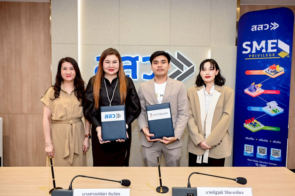 [กรุงเทพฯ – 9 เมษายน 2569] – สำนักงานส่งเสริมวิสาหกิจขนาดกลางและขนาดย่อม (สสว.) ประกาศความร่วมมือครั้งสำคัญกับ บริษัท แฟคทส์เบลนด์ จำกัด ในการลงนามบันทึกข้อตกลงความร่วมมือ (MOU) เพื่อให้สิทธิประโยชน์แก่ผู้ประกอบการที่ลงทะเบียน SME ผู้รับบริการภาครัฐ เพื่อสนับสนุนการเข้าถึงเทคโนโลยีการบริหารจัดการธุรกิจที่มีประสิทธิภาพ และช่วยลดต้นทุนให้แก่ผู้ประกอบการวิสาหกิจขนาดกลางและขนาดย่อม (SME) รวมถึงวิสาหกิจรายย่อยทั่วประเทศ